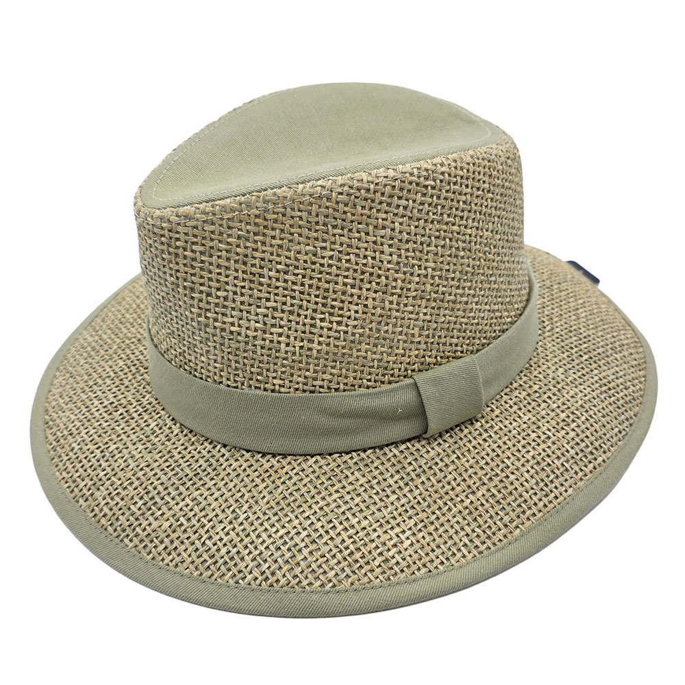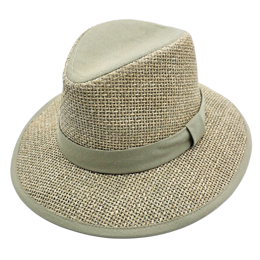 Palarie Panama Safari bej din paie de iarba de mare si bumbac cu banda olive